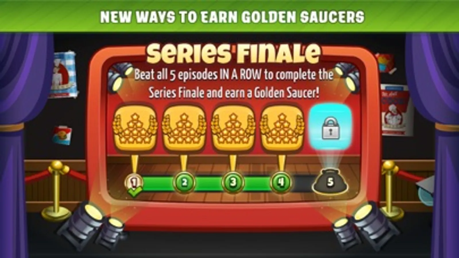 Want to test your skill? Face a gauntlet of challenging levels in a Venue’s Series Finale - experts only! Beat every episode in a Venue with 4 or more Stars to unlock!