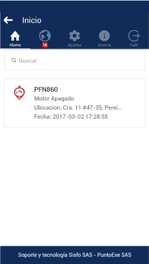 Sistema de monitoreo de ubicación y seguimiento satelital. Este modulo hace parte del sistema integrado de LOCALIZA plataforma desarrollada por PUNTOEXE y SISFO.