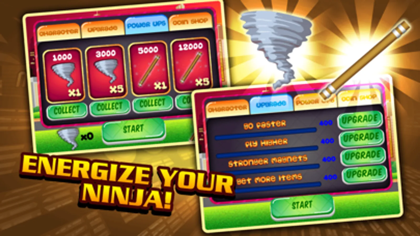 - Fly thru the city and use your mighty samurai sword to collect Energizer Gems!