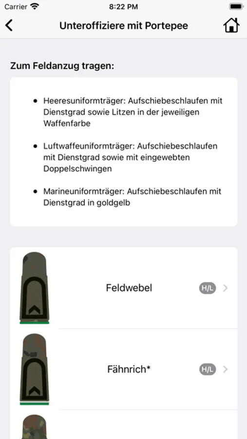 - Dienstgradabzeichen, sortiert nach Laufbahnen und Teilstreitkräften