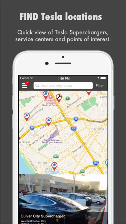 • Be notified when new Tesla Superchargers, Destination Chargers and Stores become available.