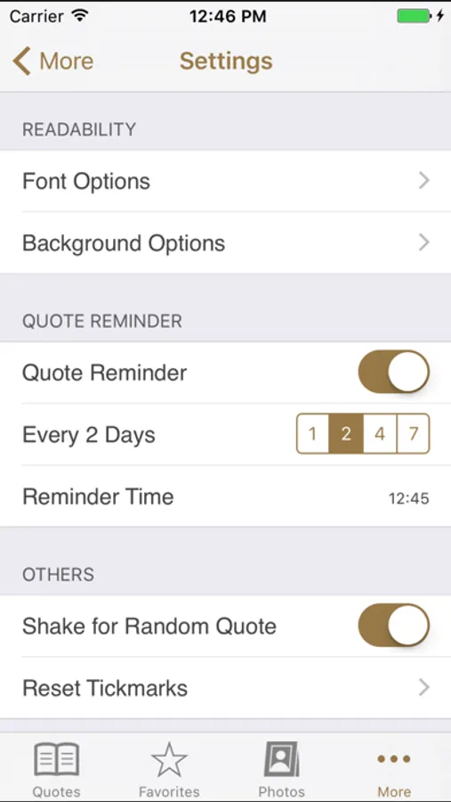 * DAILY REMINDER (receive quotes on your notification center, as much as you like)