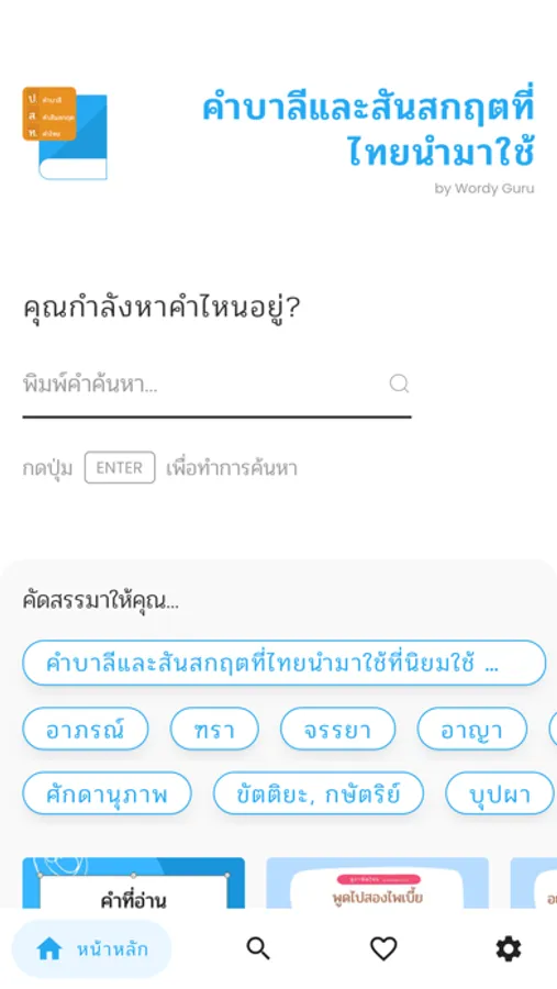 คำที่ใช้กันอยู่ในภาษาไทยของเราตอนนี้ บางส่วนเป็นคำไทยแท้ แต่บางส่วนก็เป็นคำไทยที่หยิบยืมมาจากภาษาอื่น และที่เห็นกันบ่อย ๆ คือมาจากภาษาบาลีและสันสกฤต แต่จะมีคำไหนบ้างหล่ะมาดูกันเลย แอปพลิเคชันนี้ได้รวบรวมคำบาลีและสันสกฤตที่ไทยนำมาใช้มาไว้ในมือของคุณ