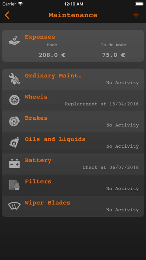 • Avoid unnecessary mechanical problems keeping track and planning the maintenance of your car, tire changes, oil changes, filters, wiper blades or other.