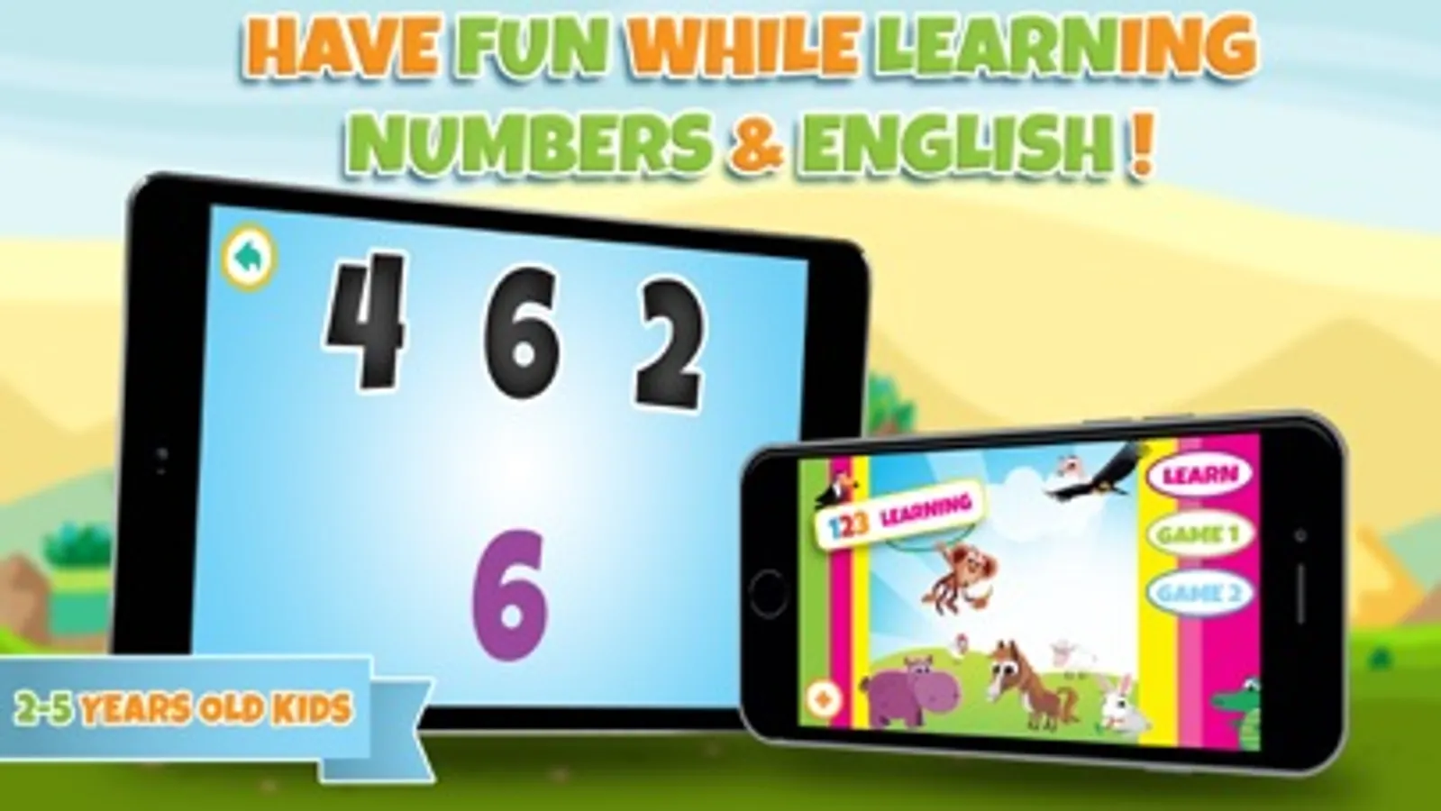 - In this educational game for kids you can find four buttons in the main menu learn, game one, game two and more apps