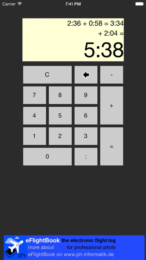 With the eTimeCalc e.g. pilots or any user can calculate times (hours:minutes).