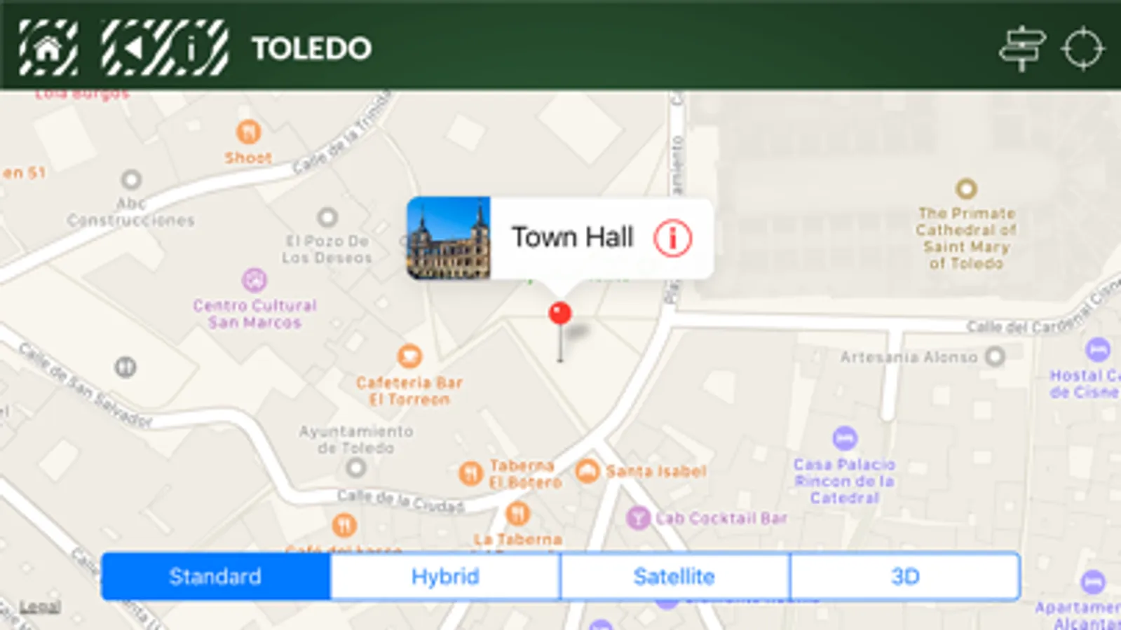 Intuitive and easy to use, the application shows you information about the most attractive places and monuments of Toledo through simply enlarging the image with your fingers and tapping on points of interest and their labels.