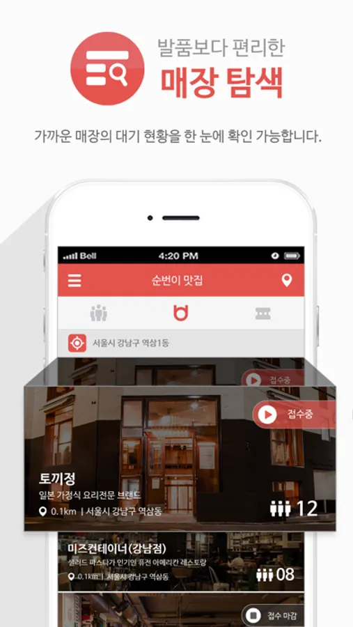 - 매장에서 기다릴 필요 없이 사전입장 알림을 받을 수 있습니다.