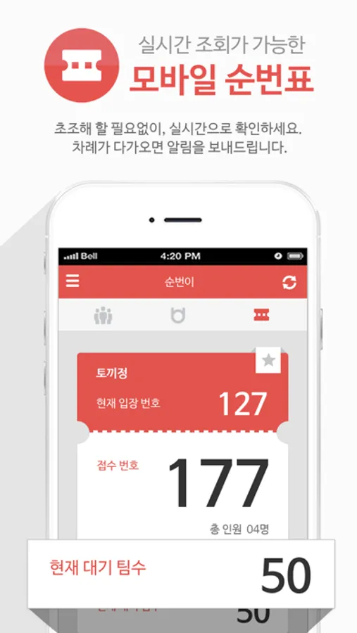 - 현재 입장 번호 및 대기 팀 수를 실시간으로 볼 수 있습니다.