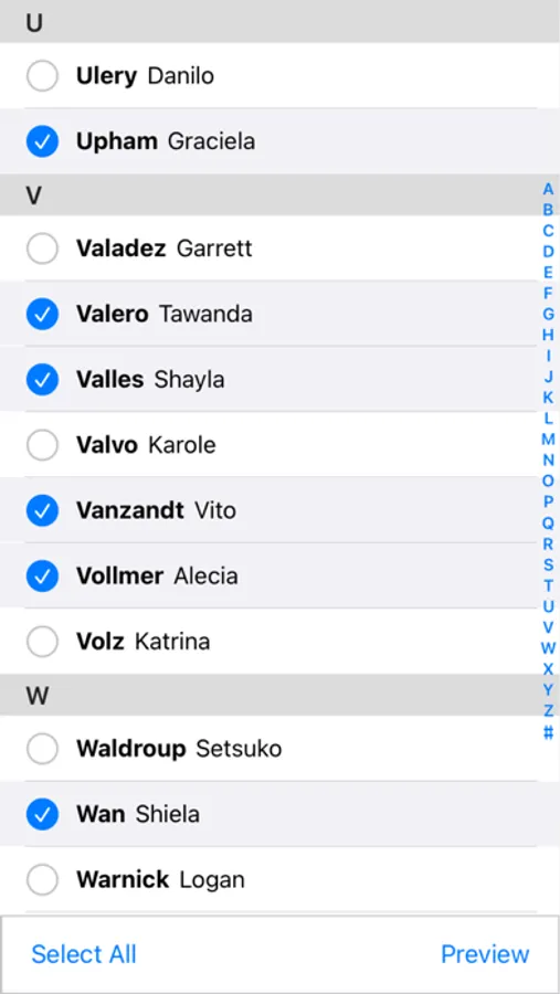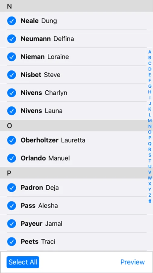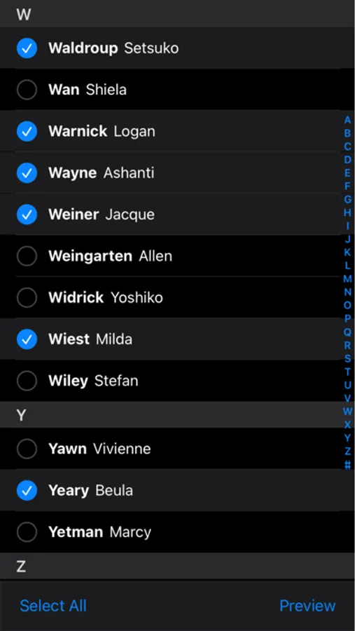 - select which contacts to export;