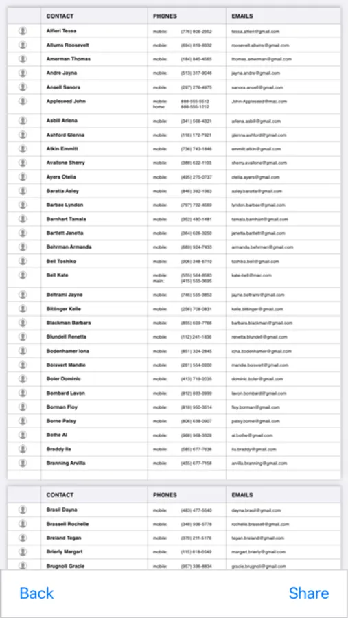 Display and export all your contacts in a PDF file in a fast and easy way.