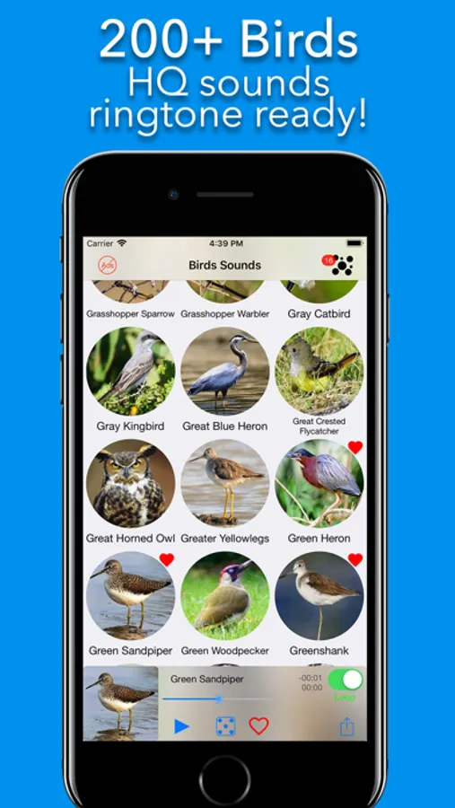 This free application contains more than 200 bird sounds from all over the world, for each bird has a photo (The image is also included in the file as cover art) and the audio format is compatible with ringtones (The sounds were recorded in nature and cleaned up from the noise)