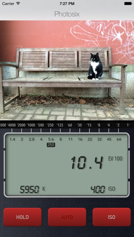 Photosix is your professional photometer. The exposure value is displayed with corresponding apertures and shutter speeds.