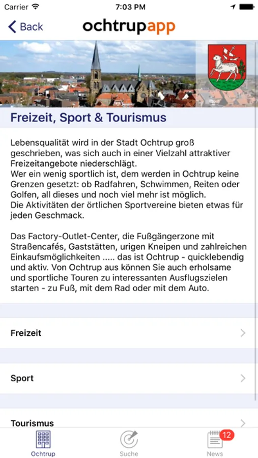 Die Stadt Ochtrup ist eine der attraktivsten Gegenden des Kreises Steinfurt. Unsere App – von Ochtrupern für Ochtrup und ihre Gäste. Über 1.000 Einträge – über 1.000 Ochtrup-Infos. Erleben Sie die schönsten Seiten von Ochtrup. Sie werden schnell fündig dank Routen- und In-der-Nähe-Funktion, Sortierung nach Themen, Entfernungsangaben oder A – Z.
