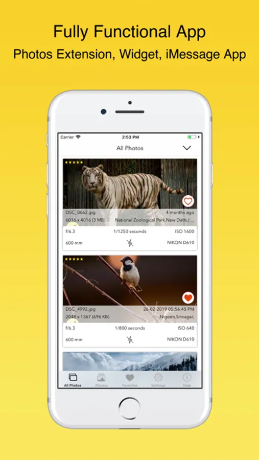 ▸ Display EXIF tags like ISO,Shutter Speed,Focal length,Camera Model,Lens Model,Time stamp,Aperture,Shutter Count.