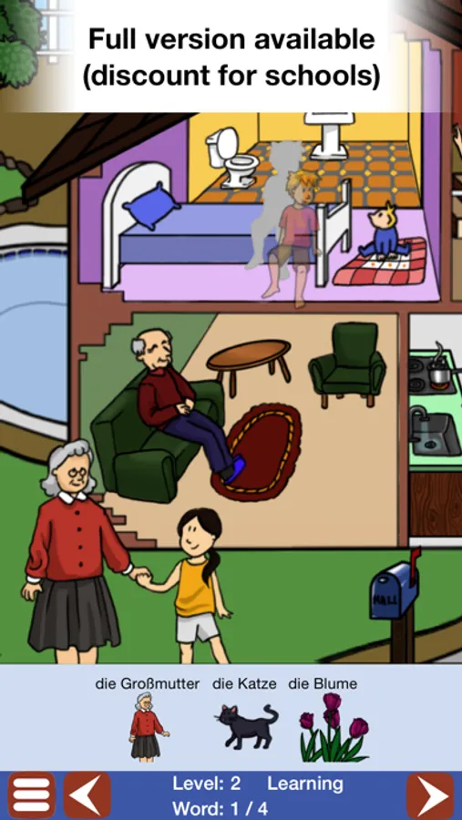 School buyers please note: we offer a full version of German for Kids with all scenes included, no in-app purchases required. Education pricing is enabled on the full version to allow you to buy at a substantial discount through Apple's Volume Purchase Program.