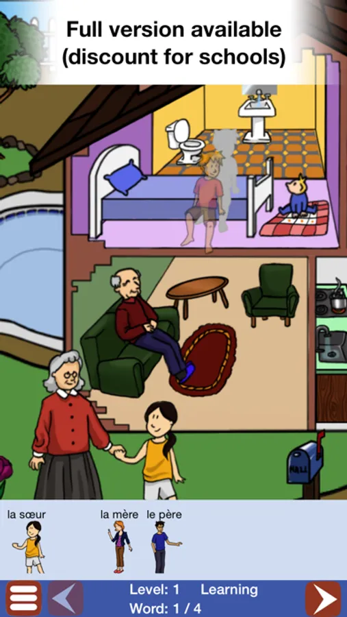 School buyers please note: we offer a full version of French for Kids with all scenes included, no in-app purchases required. Education pricing is enabled on the full version to allow you to buy at a substantial discount through Apple's Volume Purchase Program.