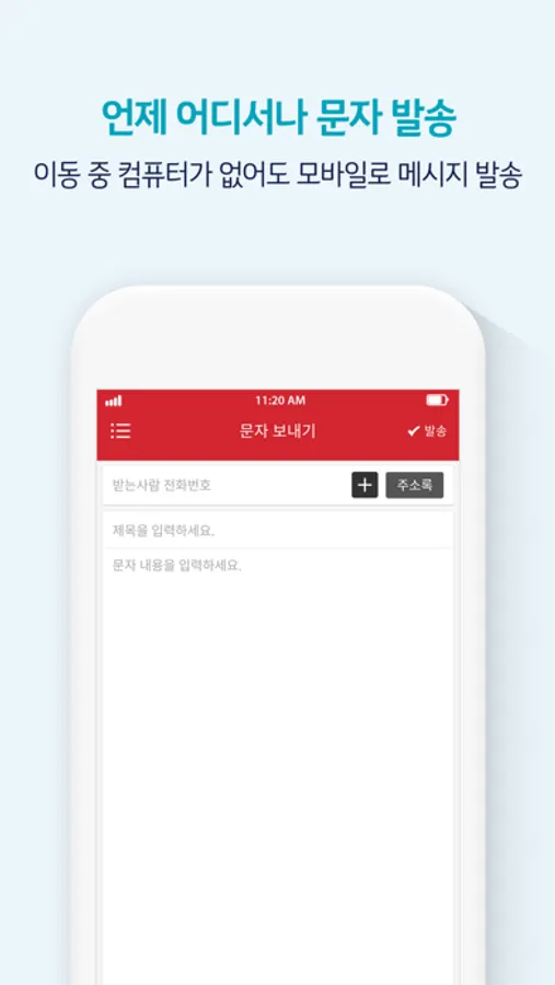 문자보내기/팩스보내기/음성보내기 : 스마트메시지 Plus 웹에서 이용하던 문자, 팩스, 음성메시지 기능을 모바일앱에서 동일하게 사용할 수 있습니다.