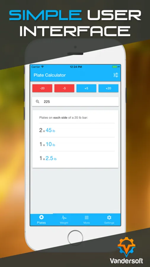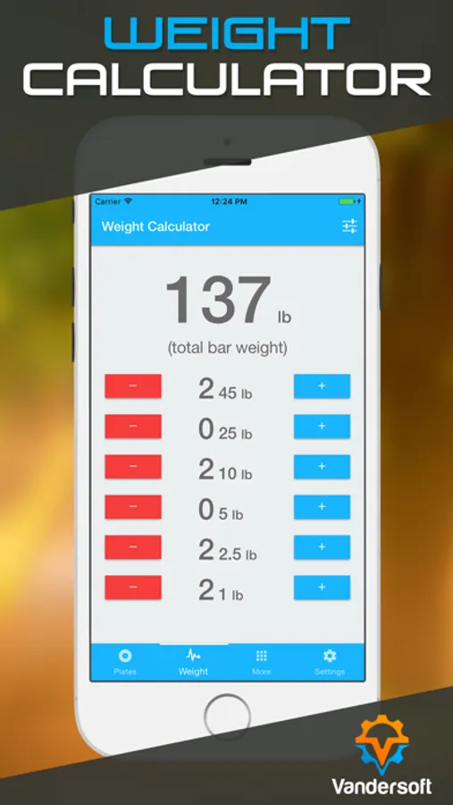 Save the plates and barbells you have available to you when you are lifting. Plate only tells you to load the plates on your barbell that you have available based off what you've setup. Plate works with metric (kg) and standard (lb) barbells and plates.