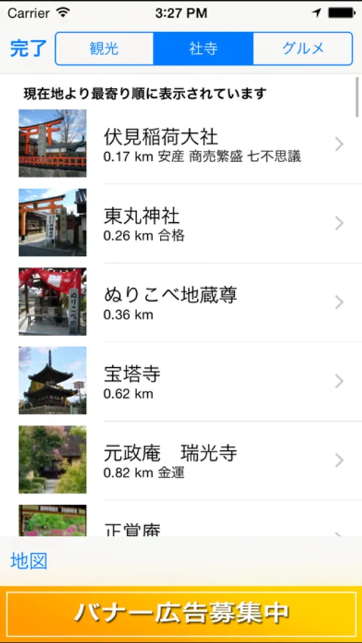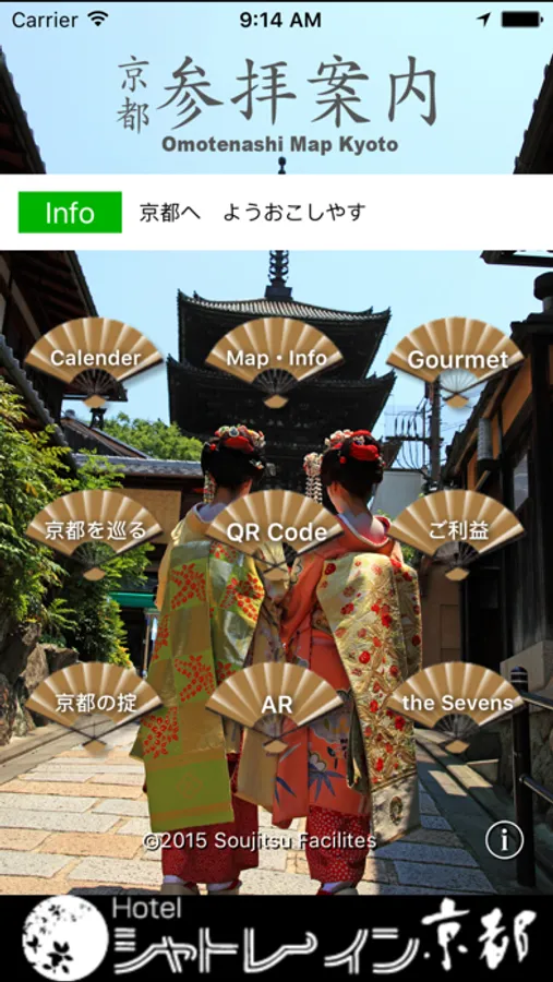 京都観光へのお出かけ前、お出かけ中のあなたに社寺、グルメ、お土産のお得情報や、いま京都のまさに旬な耳寄り情報を現地スタッフがリアルタイムで発信お届けしています。京都は初めての方から京都通の方まで、修学旅行の皆さんから一人旅の貴まで、便利なGPS,QR,ARなどを備えた高機能アプリならではのナビゲート機能を使って、京都の旅をスムーズにガイドします。お出かけ前の予習情報もたっぷりです。