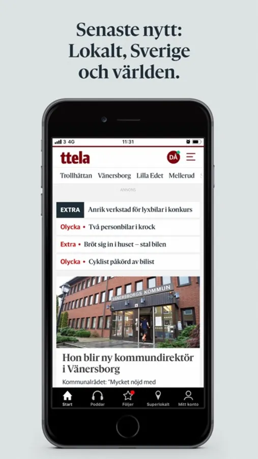 Upptäck kvalitetsjournalistik med TTELA. Få tillgång till de senaste nyheterna från Trollhättan, Vänersborg, Lilla Edet, Vänersborg, Sverige och världen.