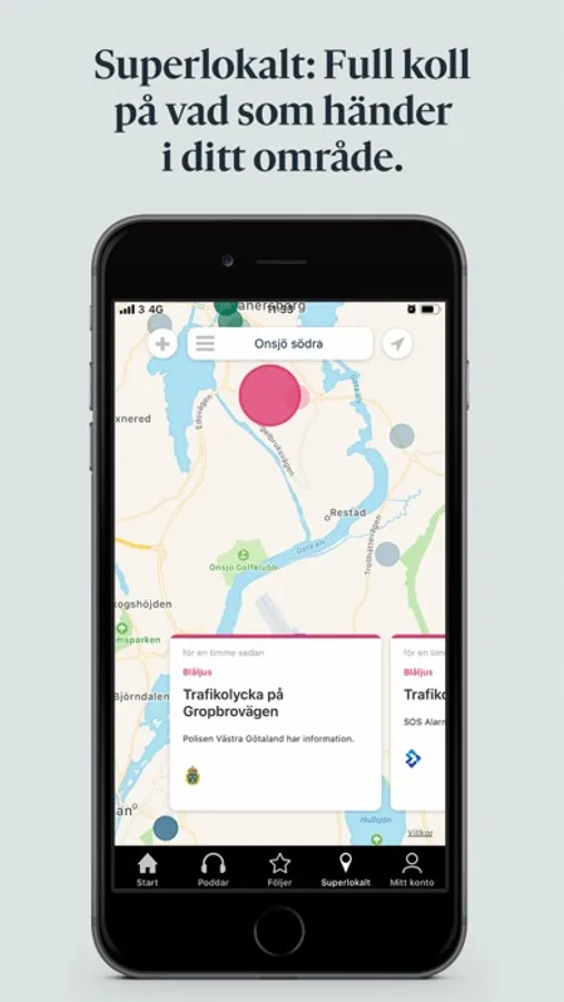 Ta del av lokala nyheter via tjänsten Superlokalt. Få koll på vad som händer i ditt närområde, till exempel vid din bostad, sommarstuga eller arbetsplats. Du får en notis när något nytt har hänt i något av dina bevakningsområden.