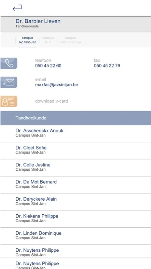 Met de Artsenlijst AZ Sint-Jan app vindt u contactgegevens snel terug.