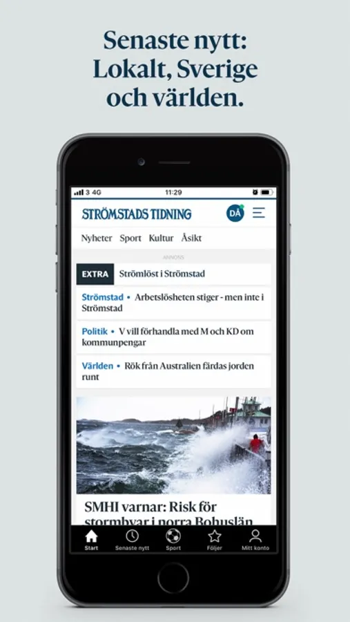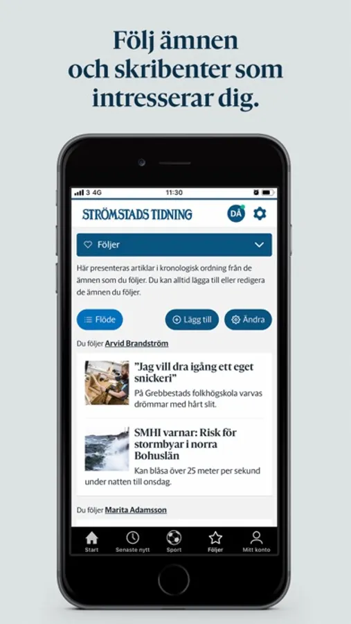 Med Strömstads Tidnings app kan du följa de ämnen och skribenter som du bryr dig om och skapa ditt eget nyhetsflöde. Du kan dessutom ställa in så att du får en pushnotis när något har hänt inom dina bevakade områden.