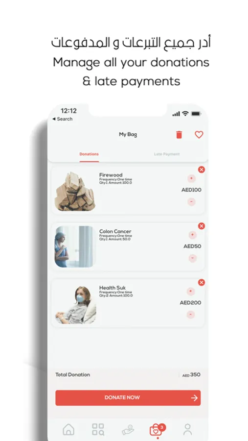 - التبرع لأي من أبواب التبرع المتاحة باستخدام بطاقة الائتمان الخاصة بك
