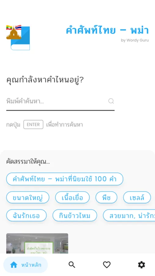 ทุกวันนี้ประเทศไทยและประเทศพม่าได้มีการติดต่อสื่อสารกันอย่างกว้างขวาง อีกทั้งในอนาคตอันใกล้เราจะรวมกันเป็น AEC จึงเป็นเรื่องดีที่เราจะเรียนรู้ภาษาของกันและกัน แอปพลิเคชันนี้ได้รวบรวมคำศัพท์ไทย-พม่า (พื้นฐาน) มาไว้ในมือคุณ