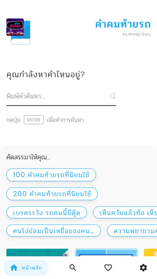 คำคมหรือถ้อยคำกวน ๆ ที่นิยมติดไว้ตามท้ายรถได้ถูกรวบรวมมาไว้ให้ท่านได้ค้นหาแล้ว นอกจากนี้เมื่อคุณชื่นชอบถ้อยคำเหล่านั้น คุณสามารถจะแบ่งปันให้เพื่อนได้ทันที