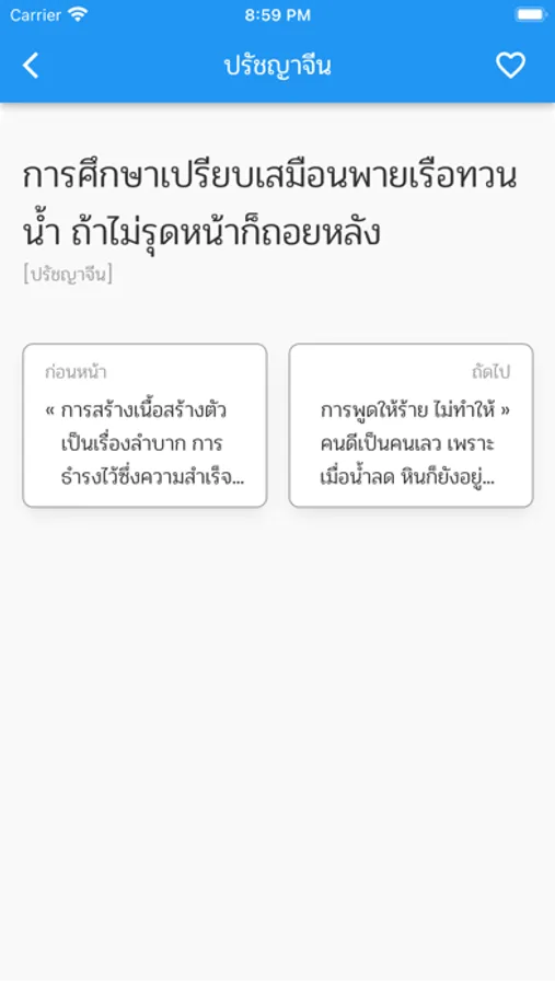 ปรัชญาจีนถือว่าเป็นคำสอนที่มีคุณค่าสามารถนำมาปรับใช้ได้กับการดำเนินชีวิตได้เป็นอย่างดี แอปพลิเคชันนี้ได้รวบรวมปรัชญาจีนที่เป็นข้อคิดและน่าสนใจมาไว้ในมือคุณ