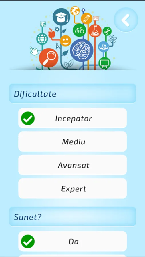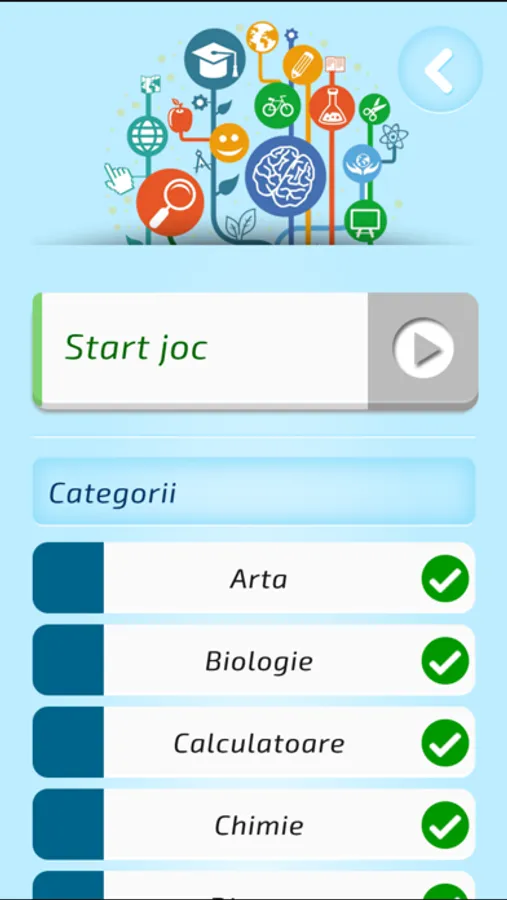 - 15 categorii de intrebari din care tu poti sa alegi : sport, film, muzica,stiinta, istorie, biologie,etc.