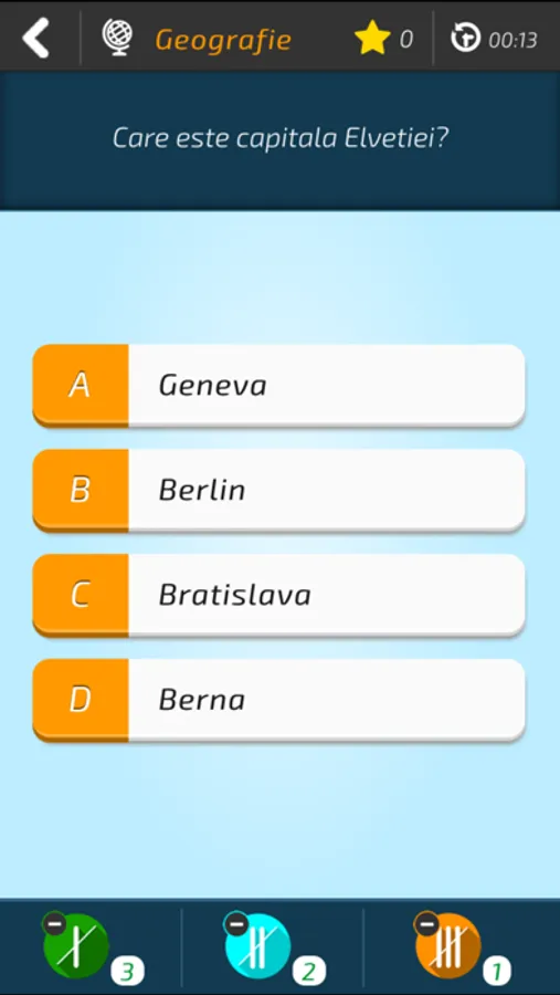 - mii de intrebari captivante cu cate patru variante de raspuns. Fiecare intrebare cu un singur raspuns corect.