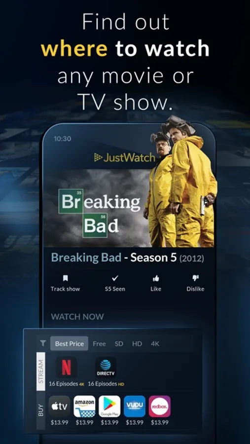 Easily find where to stream movies and TV shows online from over 500 legal providers globally, including Netflix, Hulu, Disney Plus, Apple TV+, Amazon Prime Video, Tubi TV and many more.