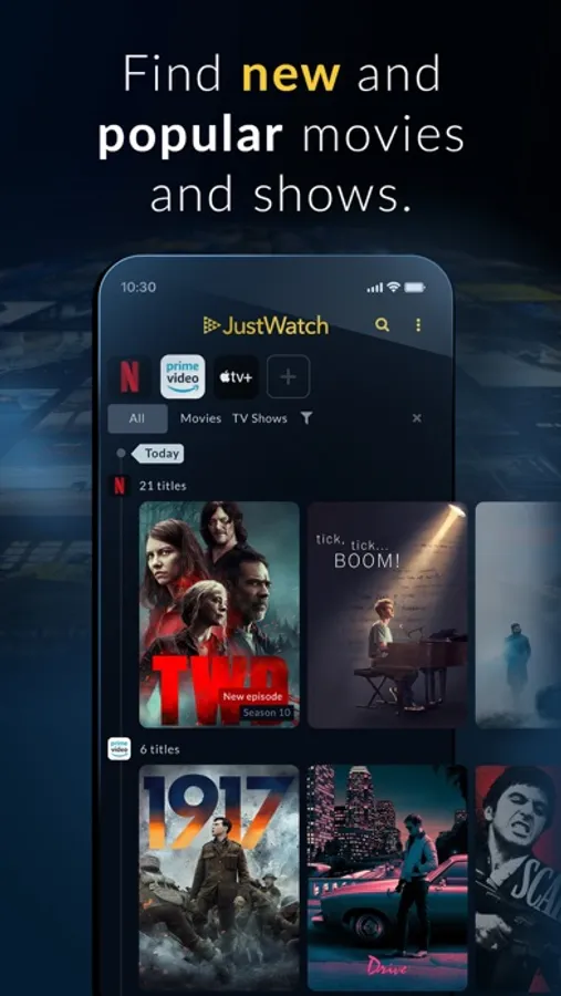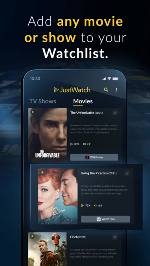 - Watchlist: add any movie or TV show to your list and get updated when it’s added to your streaming services.