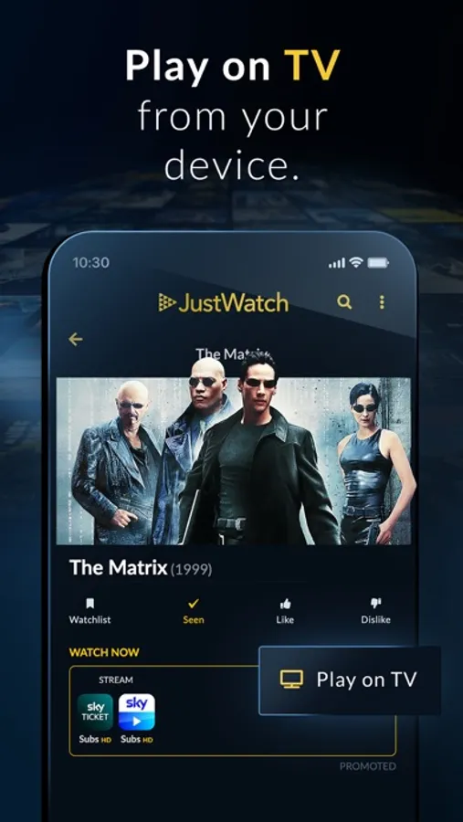 - Play on TV: tap the button and start streaming on your TV in an instant.