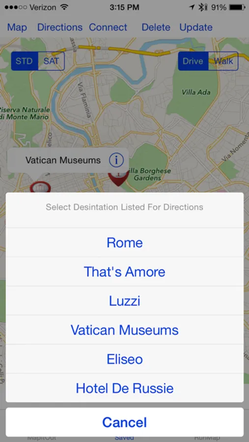 Each set of directions in your saved map will automatically open the route in Apple Maps on your iPhone or iPad. You can generate walking directions, travel directions, route directions or driving directions with a simple switch option.