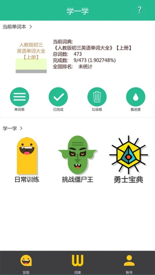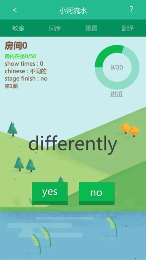 选择词库,房间,每个房间包含固定的单词,你只需要选择知道或不知道这个单词。要诚信,系统不会检测你故意点知道。