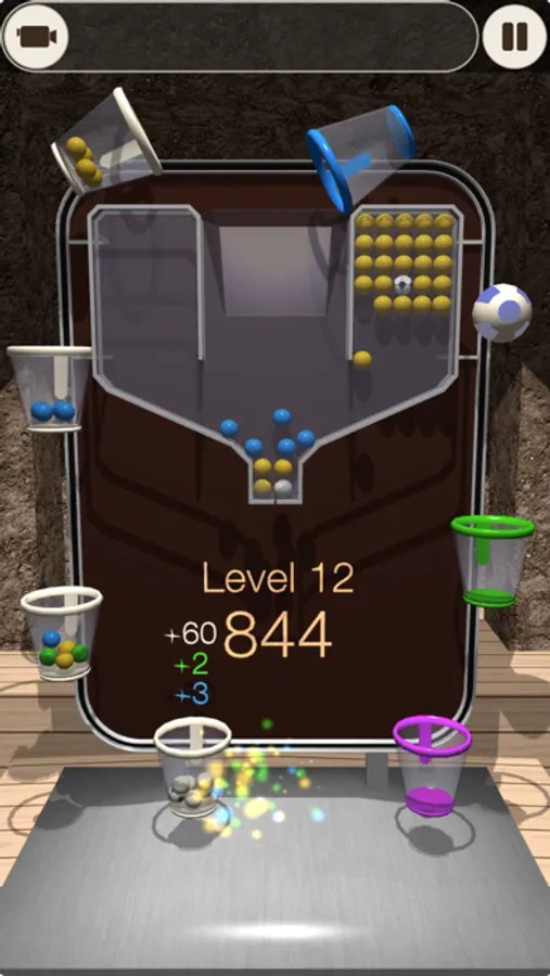 Your task is to prevent these falling balls from hitting the ground by catching them in your cup. Once your cup is filled to the top, it automatically cycles back to the top of the container and dumps its contents. You then get a brand new, empty cup with which to catch yet more balls.