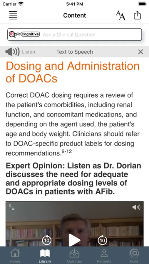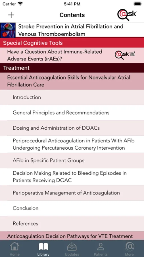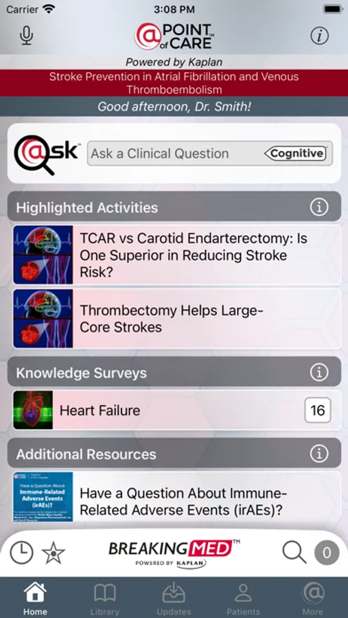 @Point of Care™ with Ask Cognitive AI is a clinical decision-making mobile platform. Stroke Prevention in Atrial Fibrillation/Venous Thromboembolism @Point of Care™ provides a streamlined clinical decision support tool for clinicians to obtain content when it is needed—enabling better decisions, better outcomes, and better care.