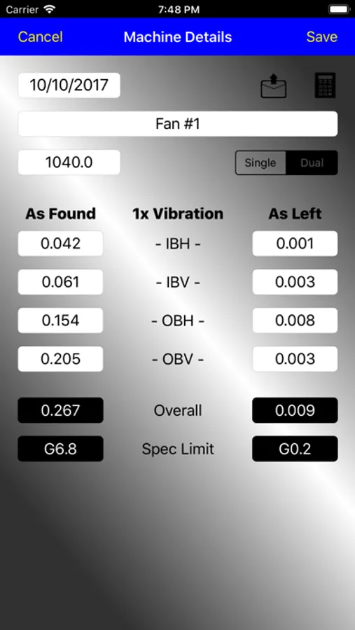 The database will track equipment, balancing speeds, as found vibration levels and balance specification as well as final vibration levels and balance specification.