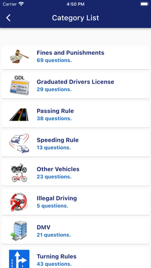Arizona Driving test has over 1000+ Questions.There are 28 Categories from which you can select a Category and practice the test There are 10 set of DMV questions each having 50 Questions. By practicing this test you can PASS the WRITTEN TEST in FIRST ATTEMPT.