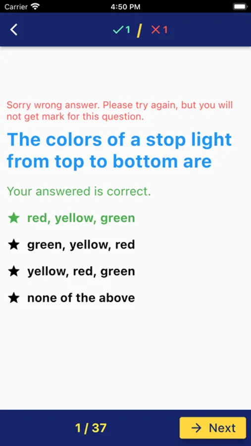 1) Tap on the "Real Test" button at the bottom of the app to write test similar to real test.