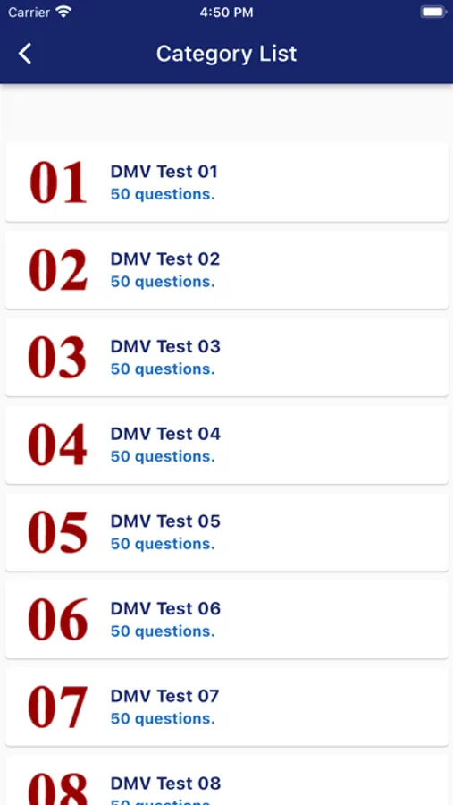 2) We have 10 test each carrying 50 questions. Tap on the button and start writing the test.