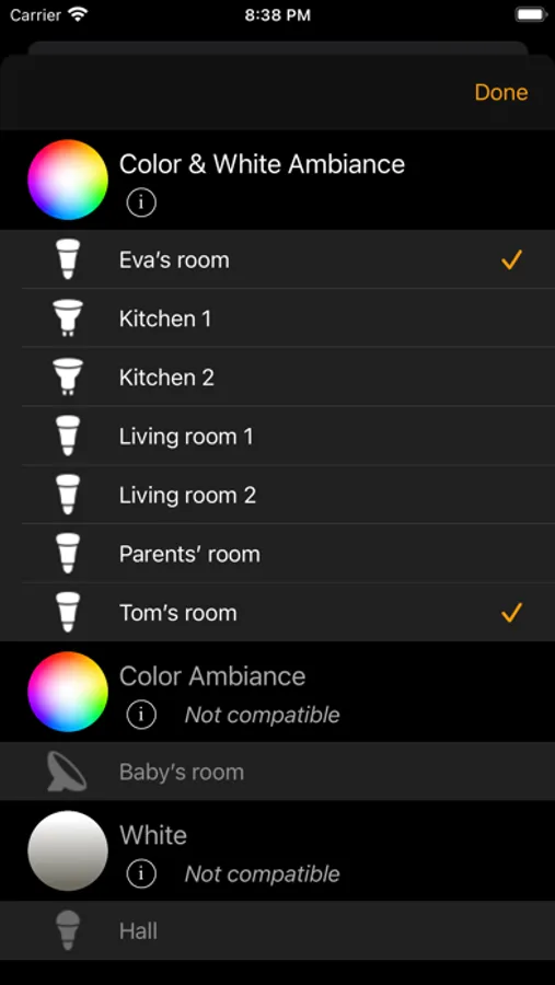 - This app only works with Extended Color Lights and Color Temperature Lights. It will NOT work with Color Lights, Dimmable Lights and On/Off Lights.