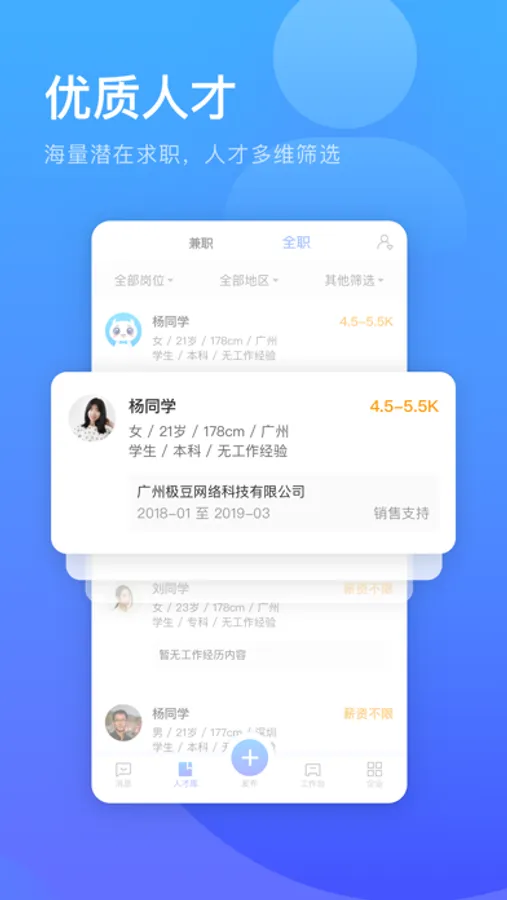 2、人 才 库:海量学生兼职群体与蓝领全职群体,让招聘能够一呼百应