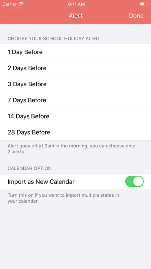 Import Australian public school holiday to your calendar and, with a few tap, your phone would start to work as your personal assistant to remind you on the upcoming school holiday before planning your next vacation and you can just start counting down to the next holiday.