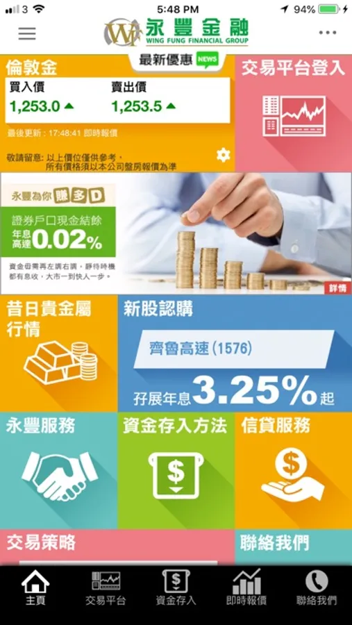 Wing Fung Financial Group smartphone app, a collection of bullion, securities & future trading platforms in one, and also, gathered information for the group’s services. Let your diversified investment portfolio controlled within your fingertips, anytime, anywhere. Highlights of the app include :