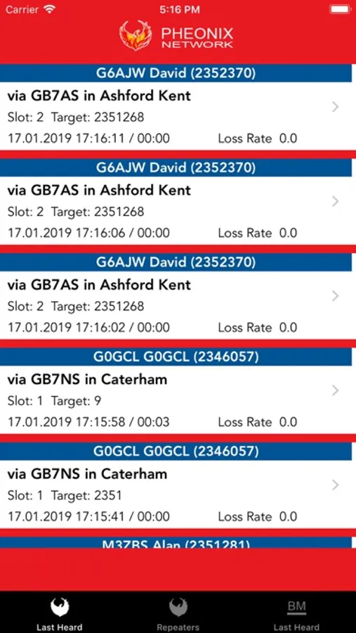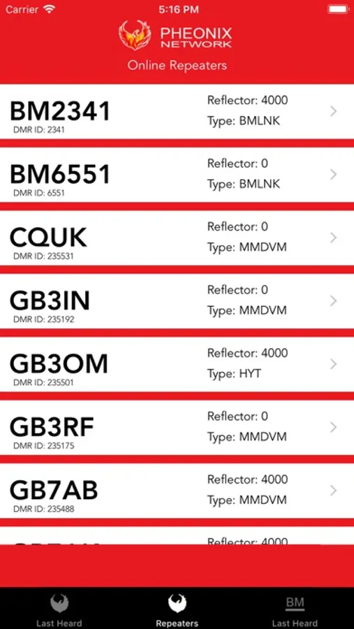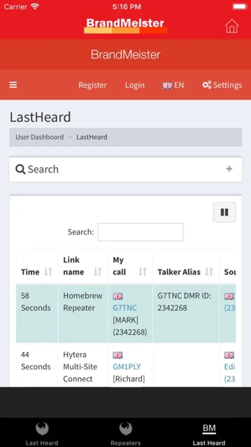 Easily view last heard callsigns across the Pheonix and Brandmeister networks.